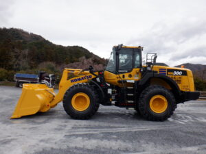 昨日からの雨も上がり、初春の日差しのもと製品の積込み用タイヤショベル(コマツ:WA380-8)の納車を行いました。